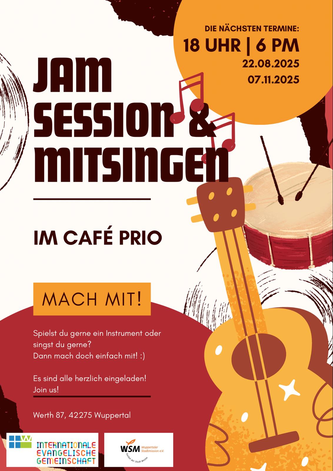 Herzliche Einladung an alle, die gerne Musik machen! Wir musizieren mit Instrumenten und unseren Stimmen: Freitag, 7. November ab 18 Uhr im Café PRIO.